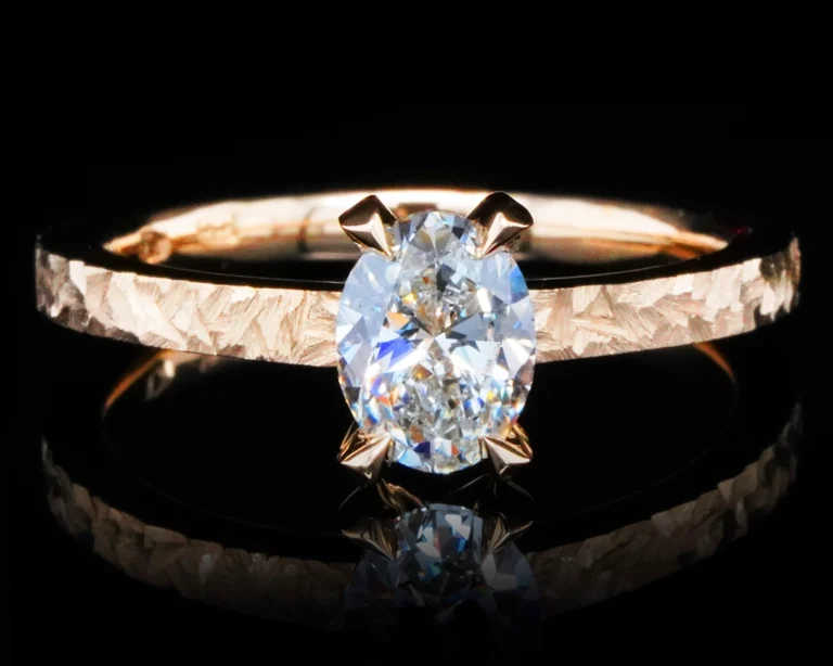 Pierścionek zaręczynowy z kutą strukturą i naturalnym diamentem 0.9 ct