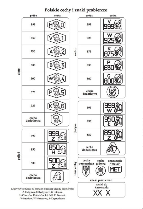 Litery oznaczające Okręgowe Urzędy Probiercze w Polsce: